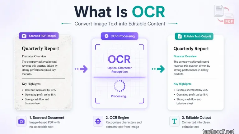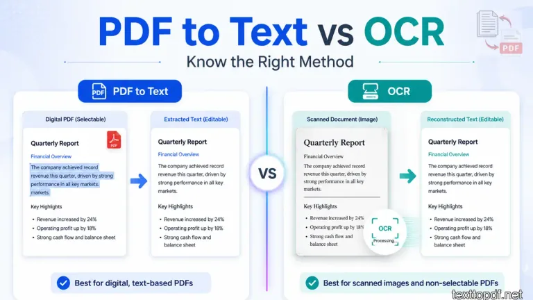This guide explains the difference between PDF to Text and OCR, how each method works, and when you should use one instead of the other.