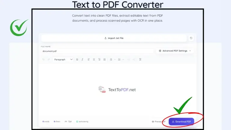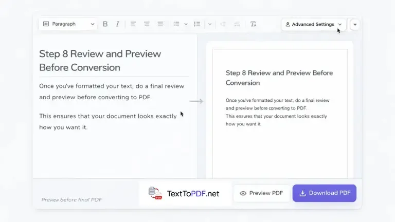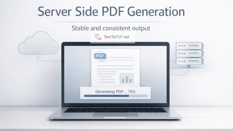 When you use Text to PDF, you can preview your content, check spacing, adjust headings, and confirm structure before downloading the final PDF. You can also understand how stable output is maintained in this server side PDF generation explanation.