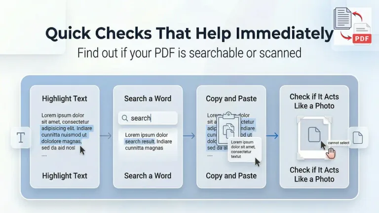 This guide explains what a searchable PDF is, what a scanned PDF is, how to tell the difference quickly, and why the answer changes the tool or workflow you should use next. It also connects that explanation with the way texttopdf.net separates direct PDF text extraction from scanned PDF OCR so the decision becomes easier when you are ready to process the file.